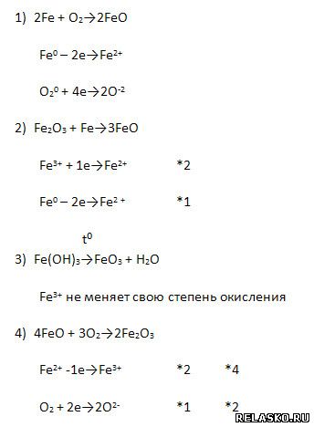 1. Запишите уравнения реакций, описывающих получение оксида железа (II) и оксида железа (III) двумя способами, и рассмотрите ОВР.
