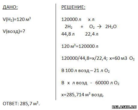 5. Какой объём воздуха нужен для сжигания 120 м3 водорода?