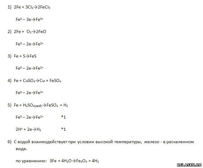 5. Химические свойства железа (рассмотрите с позиций окисления-восстановления).
