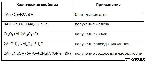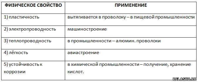1. Заполните таблицу «Применение алюминия на основе его химических свойств».