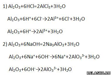 Имеет амфотерный характер, поэтому взаимодействует и с кислотами, и с щелочами (напишите уравнение возможных реакций в молекулярной, полной и сокращённой ионной формах).