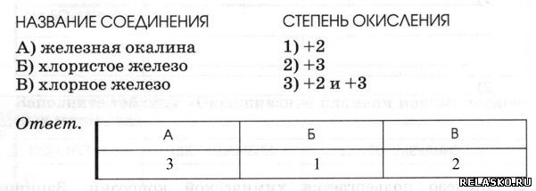 6. Установите соответствие между соединением и степенью окисления железа в нем.