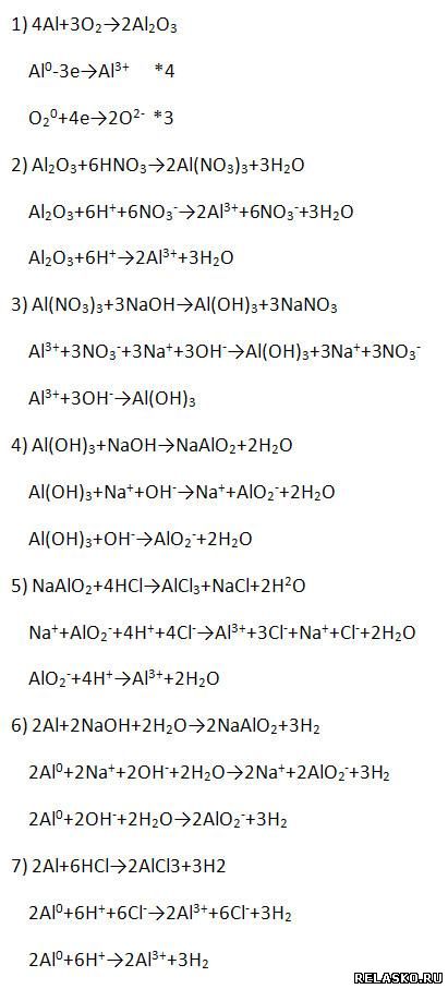 6. Химические свойства алюминия (запишите уравнения возможных реакций – молекулярные, полные и сокращённые ионные).