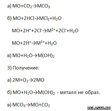 2) Характер оксидов – основный, что подтверждается химическими свойствами (напишите уравнения возможных реакций – молекулярные, полные и сокращённые ионные):