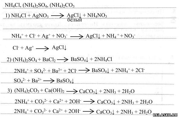 1. Как распознать растворы хлорида, сульфата и карбоната аммония? Предложите ход анализа и напишите уравнения соответствующих реакций в молекулярном и ионном видах.