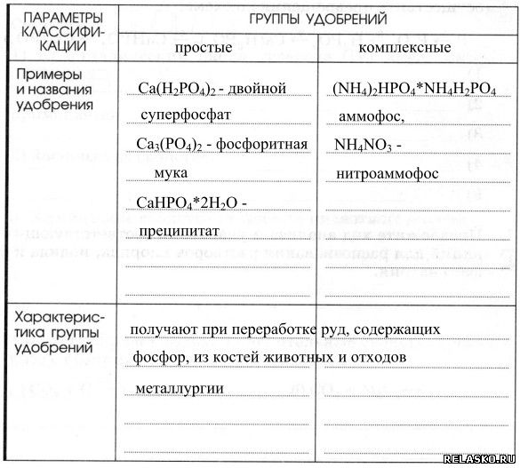 5. Предложите классификацию фосфорных удобрений, используя приложение к учебнику или дополнительную информацию, в том числе из Интернета. Дайте краткую характеристику каждой группы удобрений, заполнив таблицу «Классификация фосфорных удобрений».