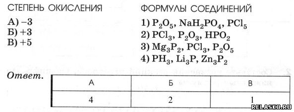4. Установите соответствие между степенью окисления фосфора и формулами его соединений.