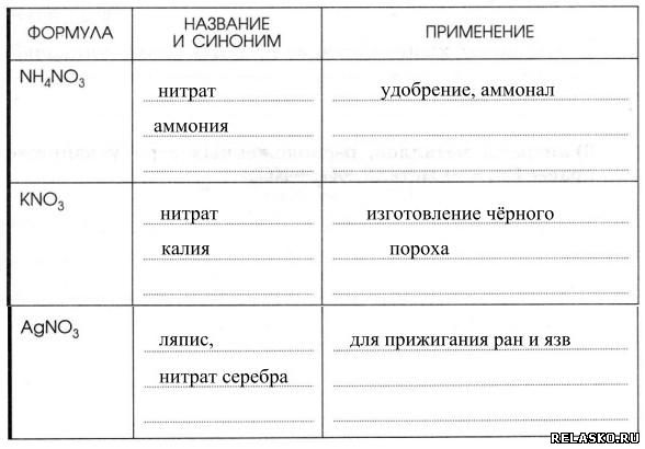 4. Заполните таблицу «Применение нитратов».