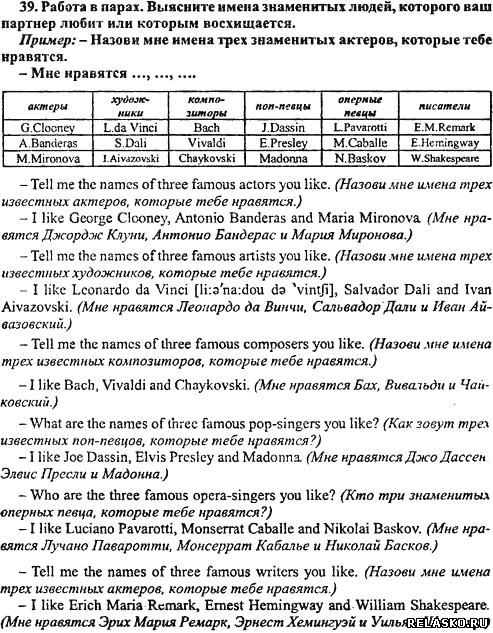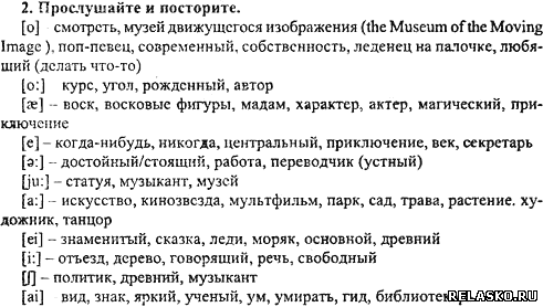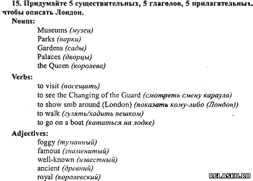 Учебник: Урок 5. ЛИЦА ЛОНДОНА Раздел 1. «Когда человек устает от Лондона, это значит, он устал от жизни»: 1, 2, 3, 4, 5, 6, 7, 8, 9, 10, 11, 12, 13, 14, 15, 16, 17, 18, 19, 20, 21, 22, 23, 24 Учебник: Урок 5. ЛИЦА ЛОНДОНА Раздел 2. Говорим о знаменитостях: 25, 26, 27, 28, 29, 30, 31, 32, 33, 34, 35, 36, 37, 38, 39, 40, 41, 42, 43, 44, 45, 46 Учебник: Урок 5. ЛИЦА ЛОНДОНА Раздел 3. Мы тоже хотим быть знаменитыми: 47, 48, 49, 50, 51, 52, 53, 54, 55, 56, 57, 58 Учебник: Урок 5. ЛИЦА ЛОНДОНА Раздел 4. Домашняя работа: 1, 2, 3, 4, 5, 6, 7, 8, 9, 10, 11, 12, 13, 14, 15, 16 Учебник: Урок 5. ЛИЦА ЛОНДОНА Словарь: Slovar Учебник: Урок 5. ЛИЦА ЛОНДОНА Progress check: 1, 2, 3, 4 Учебник: Урок 6. ЖИВОТНЫЕ В НАШЕЙ ЖИЗНИ Раздел 1.Читаем и говорим о Лондонском зоопарке: 1, 2, 3, 4, 5, 6, 7, 8, 9, 10, 11, 12, 13, 14, 15, 16, 17 Учебник: Урок 6. ЖИВОТНЫЕ В НАШЕЙ ЖИЗНИ Раздел 2. Давайте обсудим проблемы животных: 18, 19, 20, 21, 22, 23, 24, 25, 26 Учебник: Урок 6. ЖИВОТНЫЕ В НАШЕЙ ЖИЗНИ Раздел 3. Открываем новую грамматику: настоящее завершенное время: 27, 28, 29, 30, 31, 32, 33, 34, 35 Учебник: Урок 6. ЖИВОТНЫЕ В НАШЕЙ ЖИЗНИ Раздел 4. У вас когда-нибудь было домашнее животное? Что думает о вас ваш питомец?: 36, 37, 38, 39, 40, 41, 42, 43 Учебник: Урок 6. ЖИВОТНЫЕ В НАШЕЙ ЖИЗНИ Раздел 5. Домашняя работа: 1, 2, 3, 4, 5, 6, 7, 8, 9, 10, 11, 12, 13, 14, 15 Учебник: Урок 6. ЖИВОТНЫЕ В НАШЕЙ ЖИЗНИ Словарь: slovar Учебник: Урок 6. ЖИВОТНЫЕ В НАШЕЙ ЖИЗНИ Progress check: 1, 2, 3, 4 Учебник: Урок 7. ЖИВЕМ ВМЕСТЕ Раздел 1. Говорим о родственниках: 1, 2, 3, 4, 5, 6, 7, 8, 9, 10, 11, 12, 13, 14, 15, 16, 17, 18 Учебник: Урок 7. ЖИВЕМ ВМЕСТЕ Раздел 2. Отношения в семье: 19, 20, 21, 22, 23, 24, 25, 26, 27, 28, 29 Учебник: Урок 7. ЖИВЕМ ВМЕСТЕ Раздел 3. Что любят есть англичане?: 30, 31, 32, 33, 34, 35, 36, 37, 38, 39, 40, 41, 42, 43 Учебник: Урок 7. ЖИВЕМ ВМЕСТЕ Раздел 4. Дом англичанина - его замок?: 44, 45, 46, 47, 48, 49, 50, 51, 52, 53, 54, 55 Учебник: Урок 7. ЖИВЕМ ВМЕСТЕ Раздел 5. Домашняя работа: 1, 2, 3, 4, 5, 6, 7, 8, 9, 10, 11, 12, 13, 14, 15 Учебник: Урок 7. ЖИВЕМ ВМЕСТЕ Словарь: slovar Учебник: Урок 7. ЖИВЕМ ВМЕСТЕ Progress check: 1, 2, 3, 4 Учебник: Урок 8. У НАС МНОГО ОБЩЕГО Раздел 1. Нравится ли нам делать одни и те же вещи? Одинаковые ли у нас хобби?: 1, 2, 3, 4, 5, 6, 7, 8, 9, 10, 11, 12, 13, 14, 15, 16, 17, 18 Учебник: Урок 8. У НАС МНОГО ОБЩЕГО Раздел 2. Вы любите каникулы?: 19, 20, 21, 22, 23, 24, 25, 26, 27, 28, 29, 30, 31, 32, 33, 34, 35, 36, 37, 38 Учебник: Урок 8. У НАС МНОГО ОБЩЕГО Раздел 3. Домашние животные - это наше хобби?: 39, 40, 41, 42, 43, 44 Учебник: Урок 8. У НАС МНОГО ОБЩЕГО Раздел 4. Домашняя работа: 1, 2, 3, 4, 5, 6, 7, 8, 9, 10, 11, 12, 13, 14, 15 Учебник: Урок 8. У НАС МНОГО ОБЩЕГО Словарь: slovar Учебник: Урок 8. У НАС МНОГО ОБЩЕГО Progress check: 1, 2, 3, 4