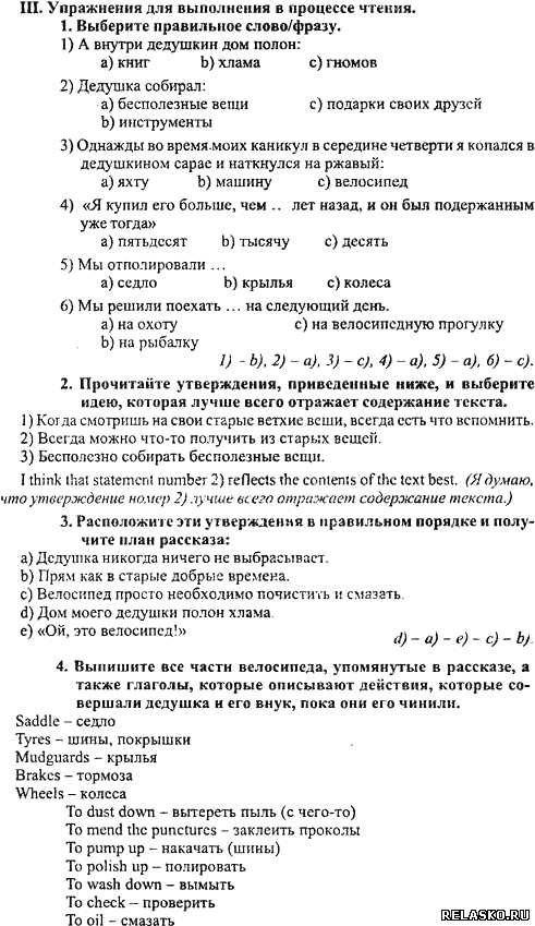 Книга для чтения: Дедушкин дребезжащий велосипед Упражнения
