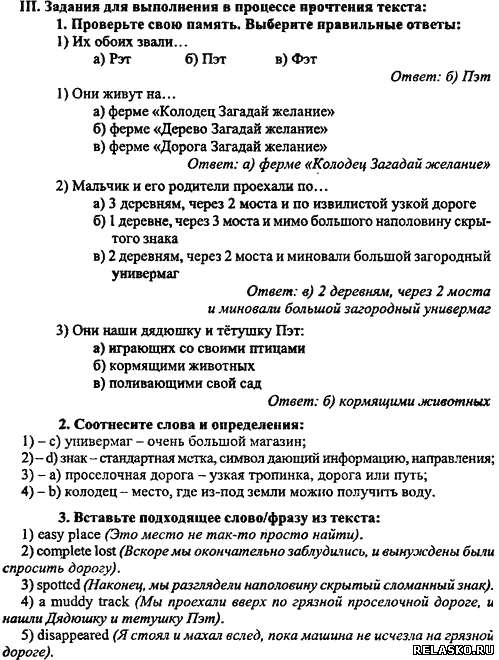 Книга для чтения: Дядюшка и тетушка Пэт Упражнения: