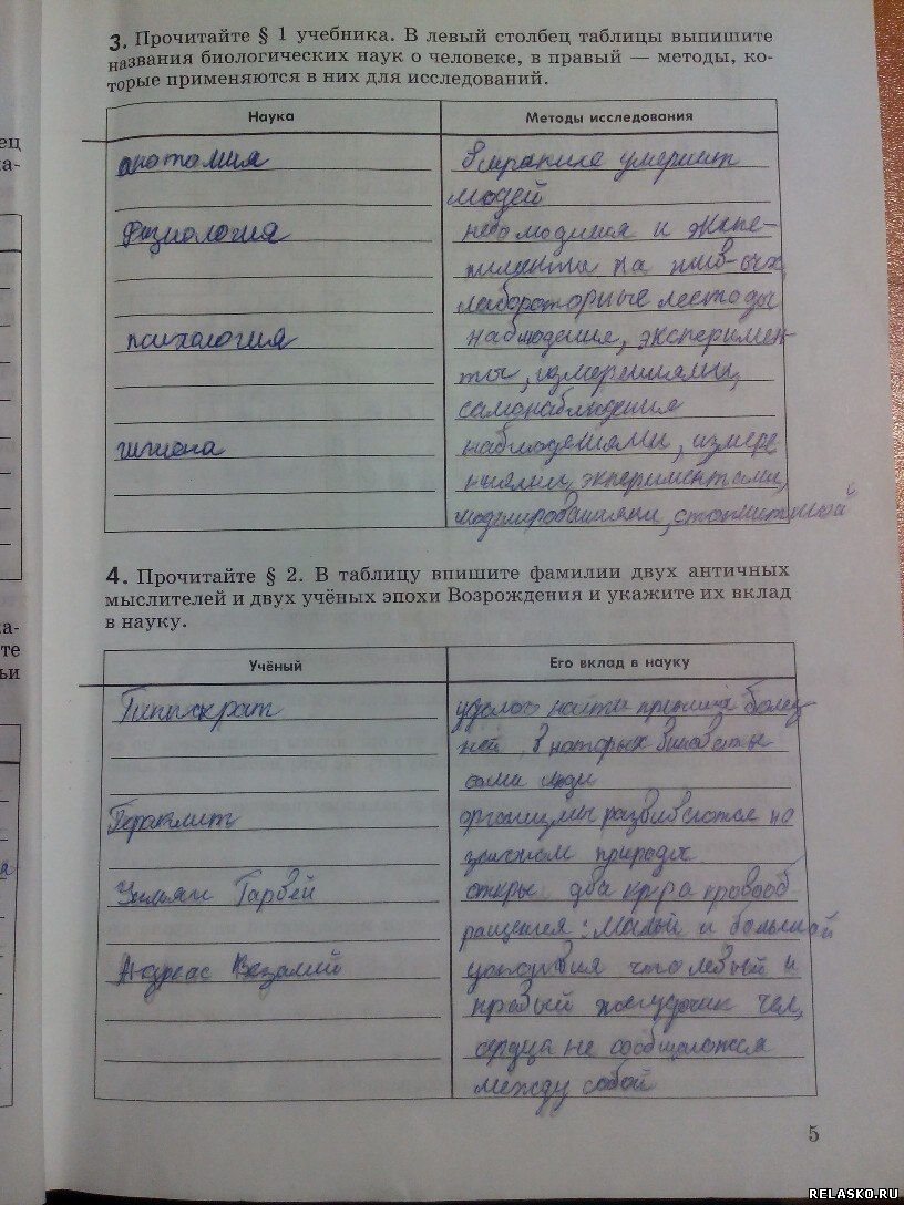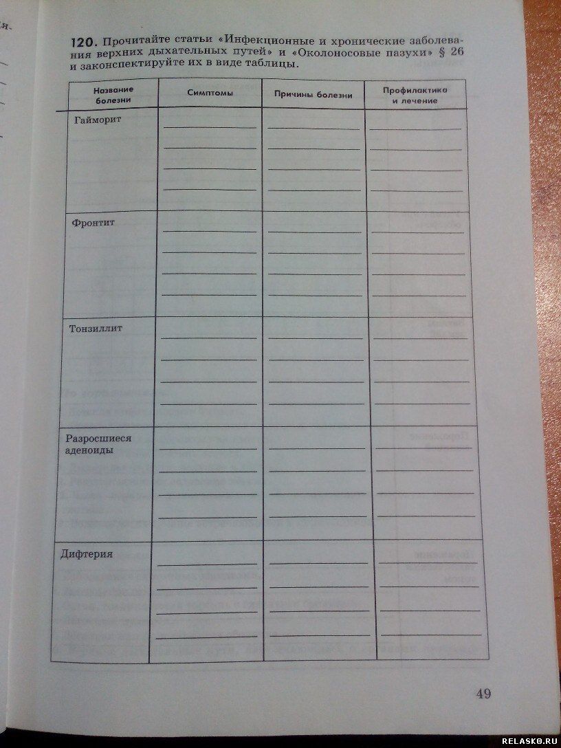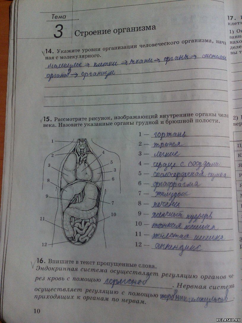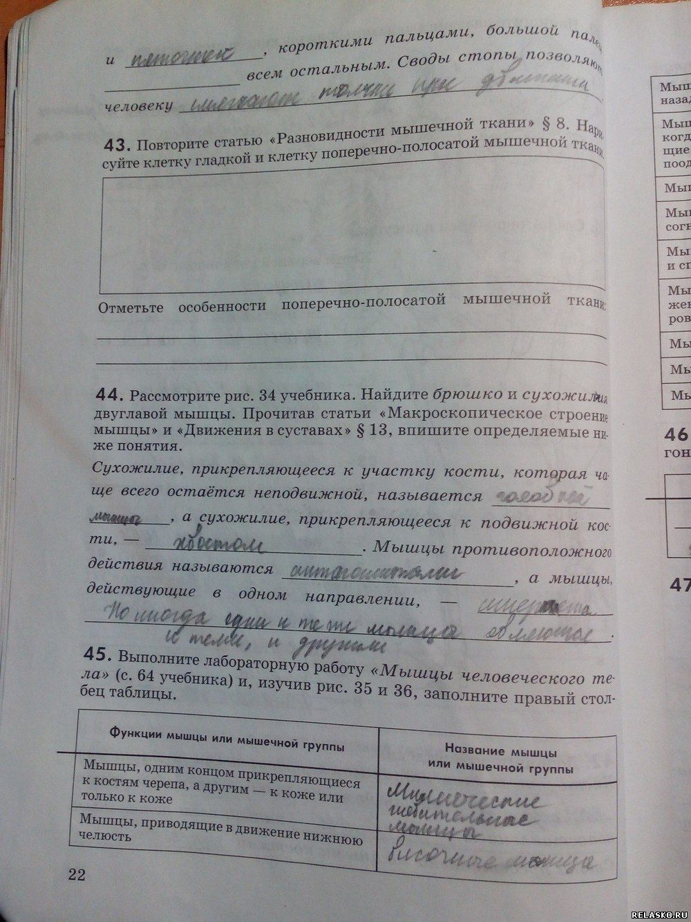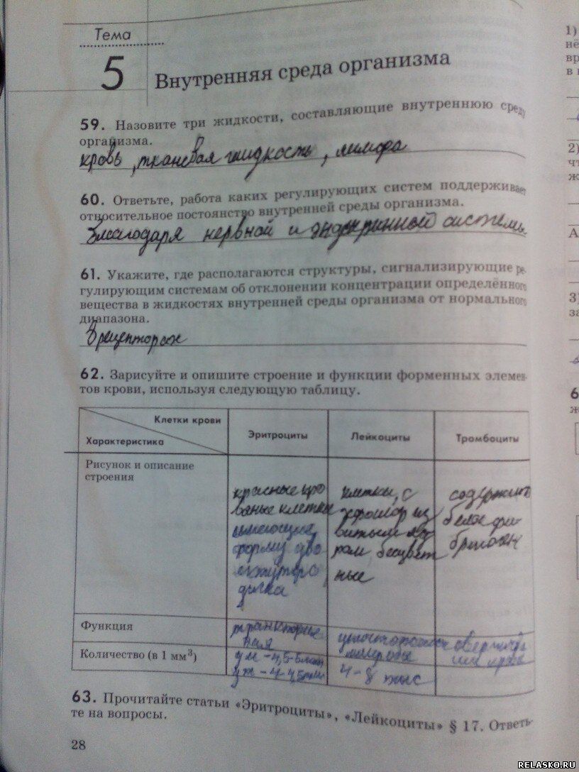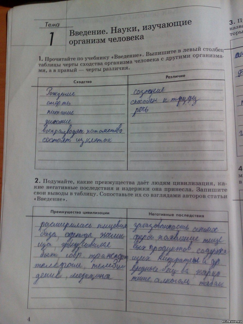 ГДЗ Биология. 8 класс. Колесов, Маш, Беляев. Рабочая тетрадь