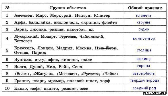 27. В каждой группе найдите и зачеркните один «лишний» объект, не подходящий к остальным по некоторому признаку; для оставшихся объектов укажите общий признак.
