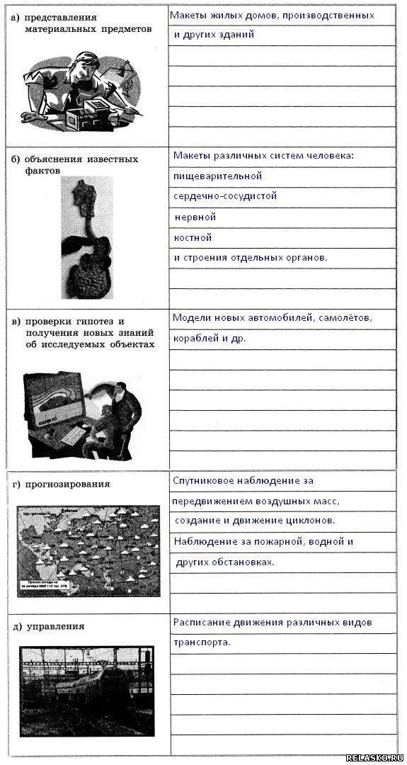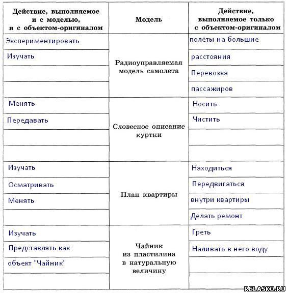 6. Для каждой из приведённых моделей запишите действие, которое можно выполнять и с ней, и с объектом – оригиналом, а также действие, которое невозможно выполнить с моделью.