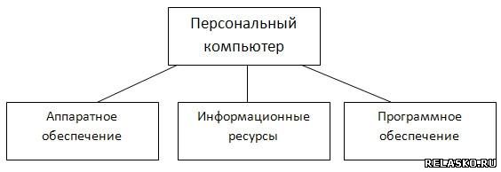 а) Персональный компьютер состоит из подсистем: аппаратное обеспечение, информационные ресурсы, программное обеспечение. б) Программное обеспечение совокупность всех программ компьютера. в) Операционная система пакет программ, управляющих работой компьютера, обеспечивающих связь между человеком и компьютером, а также запуск прикладных программ. г) Файл информация, хранящаяся в долговременной памяти компьютера как единое целое и обозначенная именем. д) Пользователь человек, пользующийся услугами компьютера для получения информации или решения задачи. е) Пользовательский интерфейс взаимодействие человека и компьютера, которое обеспечивается операционной системой.