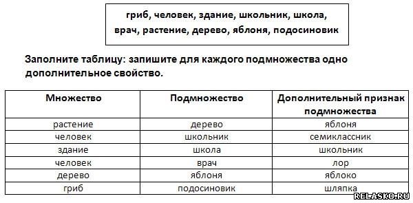 26. Выберите из списка имена девяти множеств, связанных отношением «является разновидностью»: