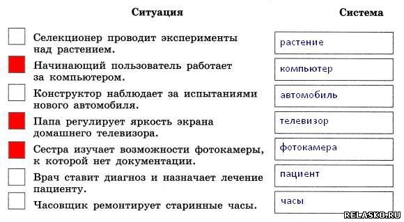 42. В каждой системе протекают некоторые внутренние процессы, которые могут быть известны или неизвестны человеку. Человек может не знать, как «внутри» устроена система, но понимать, к каким результатам на выходе приведут определённые воздействия на входе. В таких случаях говорят, что система рассматривается как «чёрный ящик». Для каждой ситуации укажите систему, о которой в ней идёт речь. Отметьте ситуации, в которых системы могут восприниматься как «чёрный ящик».