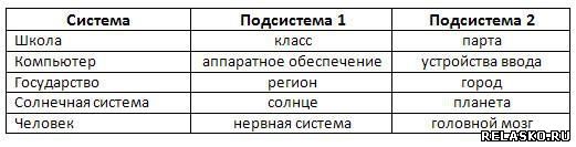 38. Заполните таблицу, выделив подсистемы в следующих системах.