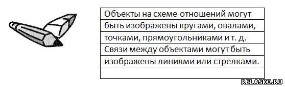 23. Внимательно прочитайте текст п. 1.3 «Отношения объектов». Опишите, каким образом строятся схемы отношений.