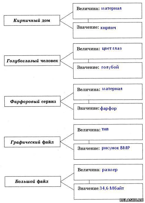 9. Запишите величины и их значения, определяющие следующие свойства объектов: