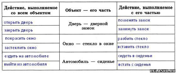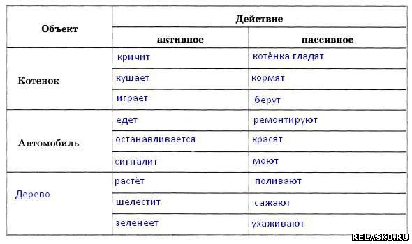 в) Действия объекта отвечает на вопросы: «Что он может делать?» (активное действие), «Что с ним можно делать?» (пассивное действие).