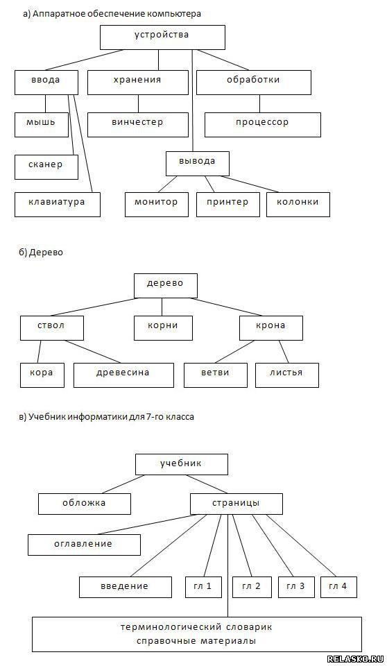 18. Придумайте примеры отношений «является элементом множества», «входит в состав», «предшествует» и представьте их с помощью схем.