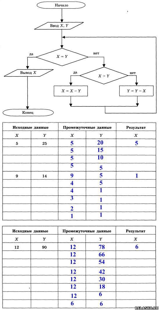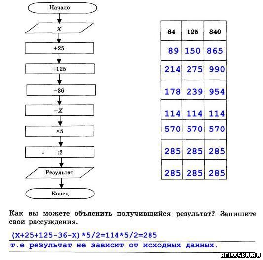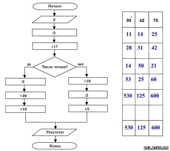 25. Выполните устный счет по блок-схеме для чисел X = 64; 125; 840.