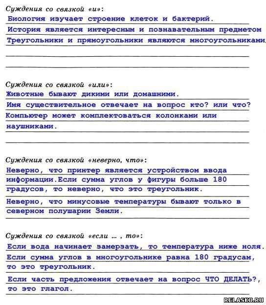 34. Запишите по 2–3 сложных суждения из истории, географии, биологии, математики, русского языка, литературы, информатики.