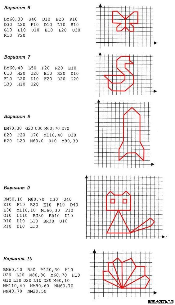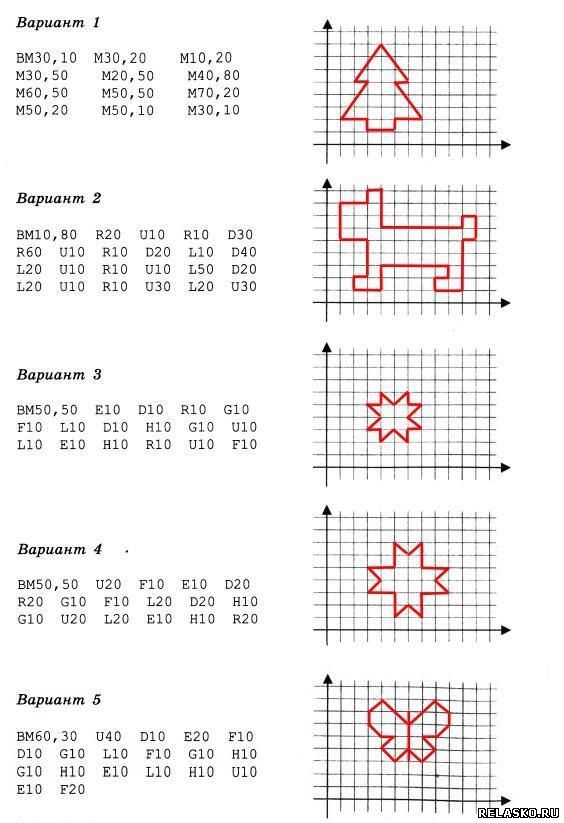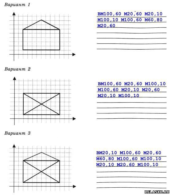 21. Подумайте, как «одним росчерком пера» нарисовать следующие картинки, при этом ни одна линия не должна проводиться дважды (если это возможно). Напишите для исполнителя Draw такие программы.