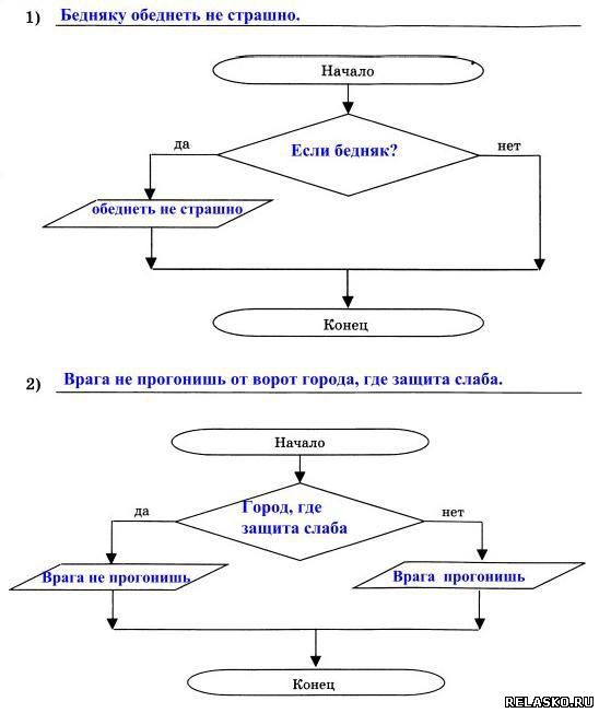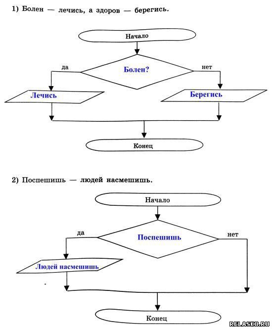 36. Вспомните пословицы, которые можно записать в виде следующих блок-схем.