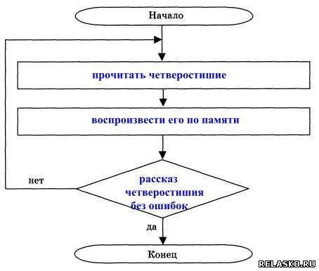 45. Руслан учит наизусть четверостишие, заданное по литературе. Он один раз прочитывает четверостишие и пытается воспроизвести его по памяти. Так он будет делать до тех пор, пока не рас¬скажет четверостишие без единой ошибки.