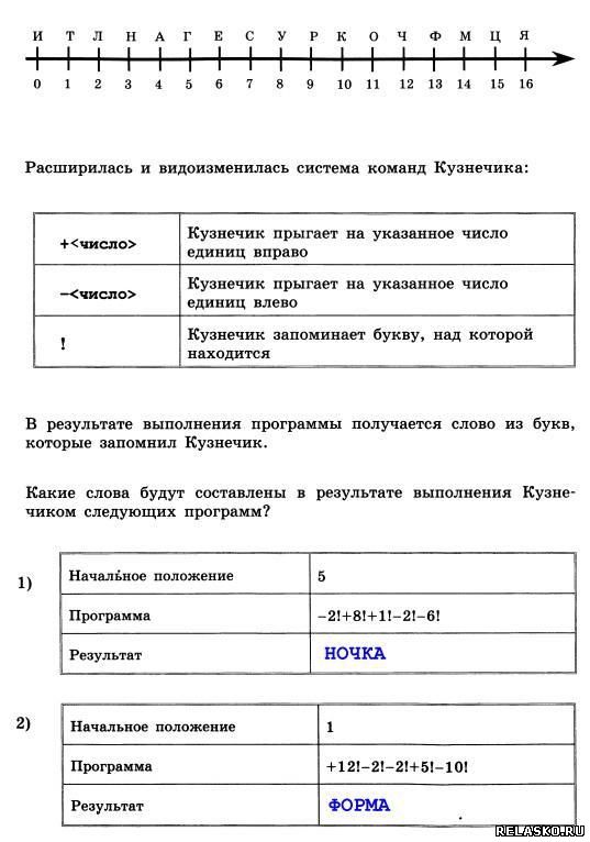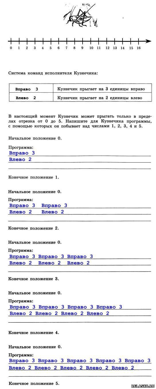 18. Напишите для Кузнечика программы, с помощью которых он соберет следующие слова.