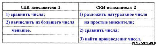 Какие команды (операции) должен уметь выполнять исполнитель первого и исполнитель второго алгоритма? Запишите их.
