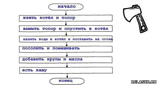 27. Оформите в виде блок-схемы алгоритм приготовления каши из топора по мотивам русской народной сказки.
