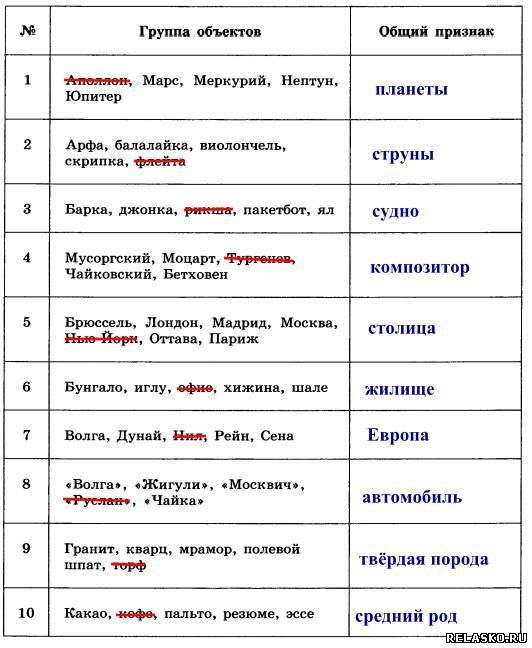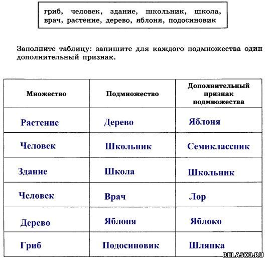 4. Задания к главе 4 «Разновидности объектов и их классификация»