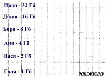 27. Шестиклассники Аня, Боря, Вася, Галя, Даша и Иван получили в подарок флешки на 1, 2, 4, 8, 16 и 32 Гб. Выясните, кто из ребят получил флешку самого большого и кто – самого маленького объёма, если известно следующее: у Ани объём флешки меньше, чем у Бори; у Васи больше, чем у Гали; у Даши меньше, чем у Ивана; у Васи меньше, чем у Ани; у Даши больше, чем у Бори.