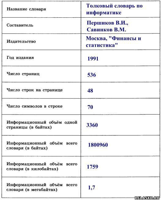 20. Подсчитайте объём информации в одном из доступных вам словарей (орфографическом, толковом и т.д.). Результаты своей работы внесите в таблицу.