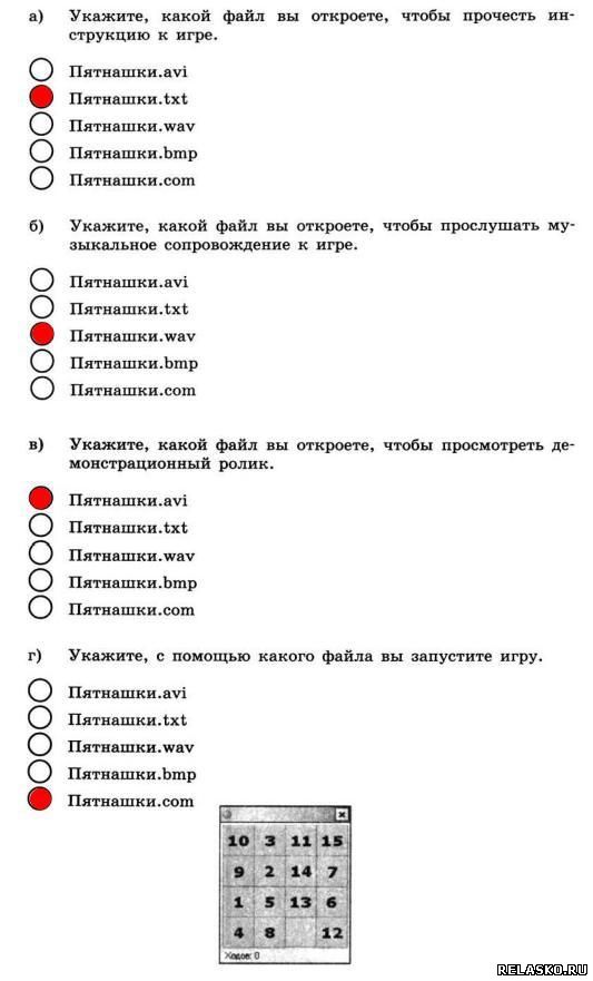 17. Вы открыли папку с компьютерной игрой «Пятнашки» и увидели там несколько файлов.