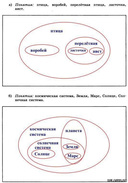 34. Определите отношения между понятиями и изобразите эти отношения в виде кругов Эйлера по образцу.