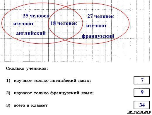 38. Каждый ученик в классе изучает по крайней мере один из двух языков: английский или французский. Английский язык изучают 25 человек, французский – 27 человек, оба языка – 18 человек.