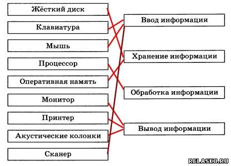 15. Установите соответствие между устройствами компьютера и функциями, которые они выполняют.