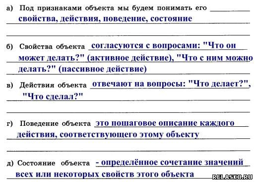 Задания к главе 4 «Разновидности объектов и их классификация»