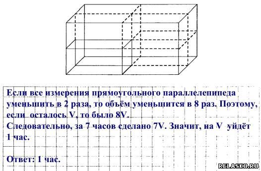 112. На склад магазина поступила партия компьютеров, полностью занимающая контейнер, имеющий вид параллелепипеда. После 7 часов работы бригады грузчиков груз по-прежнему имеет вид параллелепипеда, у которого все стороны вдвое меньше сторон первоначального.