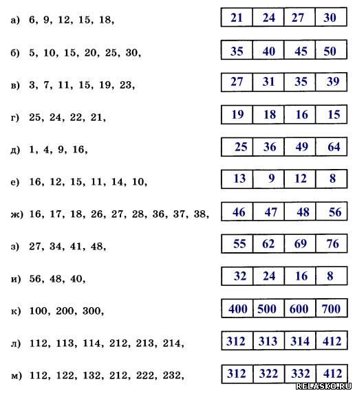 97. Проследите, как изменяются числа в каждом ряду, и продолжите к4аждый ряд, вписав ещё четыре числа.