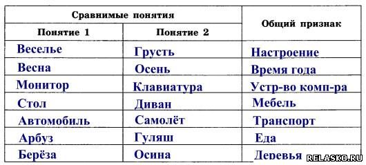 90. Составьте пары сравнимых понятий и укажите их общий признак.