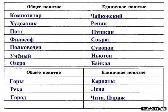 89. Выделите попарно общие и единичные понятия и запишите их в соответствующие столбцы таблицы.