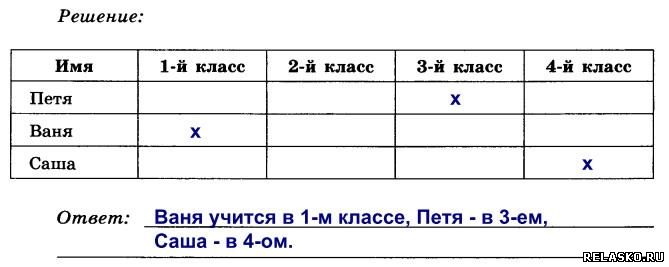 128. Петя, Ваня и Саша учатся в одной начальной школе, но в разных классах. Петя перешёл в тот класс, в котором в прошлом году учился Саша. Через год Ваня перейдёт в тот класс, который в этом году закончит Петя. В каком классе учится каждый из мальчиков?