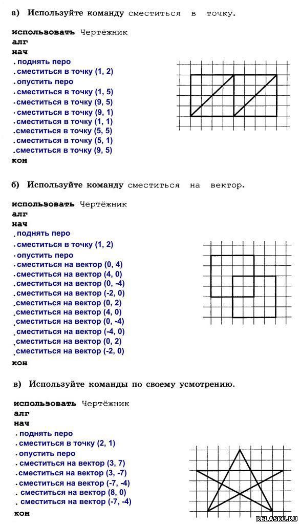 Задания к главе 18 «Управление исполнителем Чертёжник»