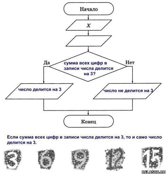 192. Оформите в виде блок-схемы признак делимости натурального числа на 3.