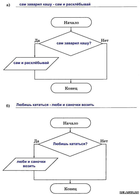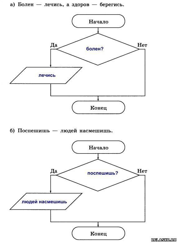 194. Вспомните пословицы, которые можно записать в виде следующих блок-схем.